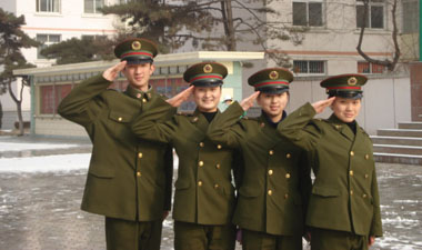 我校被選招到蘭(lan) 州軍(jun) 區司令部文工團的同學(從(cong) 左到右:王丹鳳、李雪、馬小納、顧娟)在軍(jun) 區大院合影