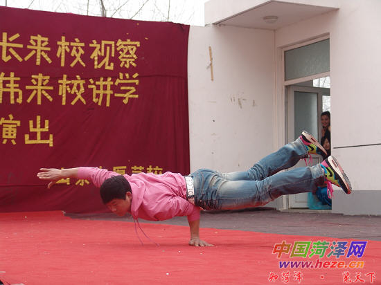 3月10日下午,為(wei) 歡迎謝孟偉(wei) ,菏澤中原藝校的師生表演了雜技、舞蹈、小品、歌曲等精彩的文藝節目。由於(yu) 天氣陰冷,許多人穿著羽絨服等棉衣,但謝孟偉(wei) 穿得卻很單薄,隻是一身牛仔裝。演出在室外進行,大家都被凍得直打寒戰。自然,謝孟偉(wei) 更冷,隻見他不住地搓手、跺腳。