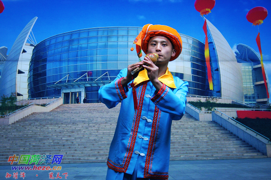 中國菏澤網消息 “沒有花香,沒有樹高,我是一棵無人知道的小草……”近日,頭帶小黑帽,手拿花手絹,身著花布衫,一彎腰駝背的“老太太”操地道的東(dong) 北腔,詼諧幽默的語言和到位的形體(ti) 動作,令人捧腹大笑。他叫陳寵安,今年19歲。一段小品過後,他又吹奏笛子、葫蘆絲(si) 、打快板……如今,他準備走上菏澤網絡春晚的舞台一展風采。